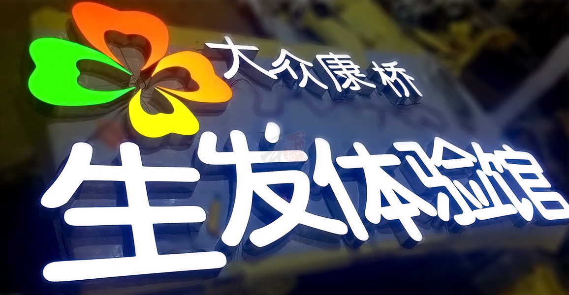 大众康桥门头招牌超级字超级发光字制作案例